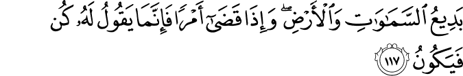 Translation: He is the Creator of the heavens and the earth: when He decrees a thing, He merely says, "Be," and there it is.