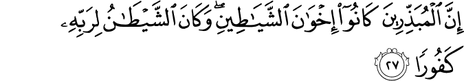 Translation: because the spendthrifts are the brethren of Satan and Satan has been ungrateful to his Lord.