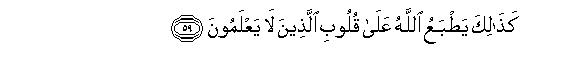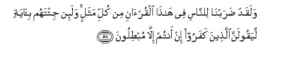 [58-60] We have set forth in this Qur'an every sort of argument to make the people understand, but whatever Sign you may bring, the disbelievers will certainly say, "You are following falsehood." Thus Allah seals the hearts of those who lack knowledge. So, (O Prophet,) have patience: surely Allah's promise is true;84 and let not those who lack (certainty of) faith find you light.85