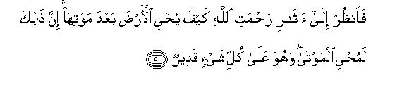 In conclusion, a parable has been presented to make the people understand that just as dead earth comes to life, all of a sudden, by a shower of rain sent by God and swells with vegetation and plant life, so is the case with the dead humanity. When God sends a shower of His mercy in the form of Revelation and Prophethood, it also gives a new life to mankind and causes it to grow and develop and flourish. Therefore: "If you take full advantage of this opportunity, the barren land of Arabia will bloom by Allah's mercy and the whole advantage will be your. But if you do not take advantage of it, you will harm only your selves. Then no regret will avail and no opportunity will be provided to make amends."