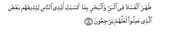 64This is again an allusion to the war that was going on between Byzantium and Iran, which was telling on the whole of the Middle East. "Man's own doings" means the wickedness and oppression and tyranny, which inevitably appear in human conduct and character as a result of adopting shirk and atheism and ignoring the Hereafter. "Maybe they mend their ways" means that Allah shows the evil consequences of some of the acts of men in this world before the punishment of the Hereafter so that they understand the reality, feel the error of their conjectures and turn to the righteous belief, which the Prophets of Allah have been presenting before man since the earliest times, and besides adopting which there is no other way of ordering human conduct on sound foundations. This subject has been presented at several places in the Qur'an, e.g. in At-Taubah: 126, Ar-Ra'd: 31, As-Sajdah: 21, Al-Tur: 47.