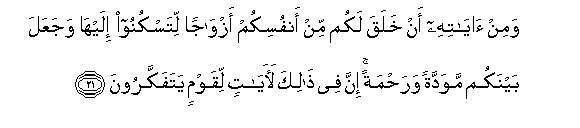 [21] And of His Signs is this that He has created for you wives from your own species28 that you may find peace with them,29 and created love and mercy between you.30 Surely in this there are many Signs for those who reflect.