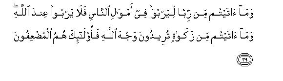 59This is the first verse revealed in the Qur'an that condemned interest. It only says this: "You pay interest thinking that it will cause an increase in the wealth of the money-lender. But actually, in the sight of Allah, interest does not increase the wealth, but the wealth is increased by the payment of the Zakat ". Afterwards when the Commandment prohibiting interest was sent down at Madinah, it was said: "Allah deprives interest of all blessing and develops charity." (For the later Commands, see AI-i-`Imran: 130, and AI-Baqarah: 275 to 281).