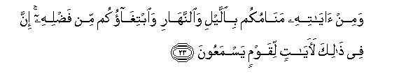 [23] And of His Signs is your sleep by night and by day and your seeking of His bounty.33 Surely in this there are many Signs for those who pay heed.