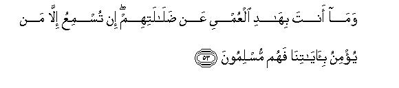 78That is, "It is not for the Prophet that he should help and guide the blind by the hand to the the right way all through the life. He can only show guidance to the right path. But guiding those whose mind's eyes have been blinded and who do not at all see the way that the Prophet tries to show them, is not within the power of the Prophets."