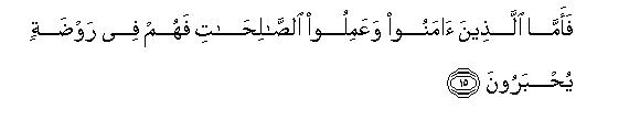 21One thing here is noteworthy. "Good works" have been mentioned as a necessary adjunct of the "faith", which will earn one the blissful Garden, but no mention has been made of the "evil acts" while mentioning the evil end of "disbelief . This clearly indicates that disbelief by itself is enough to mar the destiny of a person, whether it is accompanied by the evil act or not.
