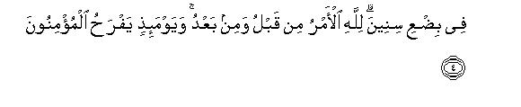 2That is, "When the Iranians became victorious first, it did not mean that the Lord of the worlds, God forbid, had been humbled and when the Romans will gain victory afterwards, it will not mean that Allah's lost kingdom will be restored to Him. Sovereignty in any case belongs to Allah. Allah gave victory to the side that became victorious first, and Allah will give victory to the side that will gain victory after wards. For no one in his Kingdom can achieve domination solely by his own power. He whom He raises, rises and he whom He causes to fall, falls."