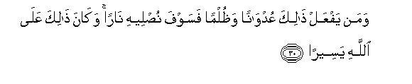 [29-30] O Believers, do not devour one another's property by unlawful ways; (instead of this) do business with mutual consents50 And do not kill yourselves;51 believe it that Allah is Compassionate to you.52 We shall throw into the Fire the one who commits such acts of aggression and injustice; and this is very easy for Allah.
