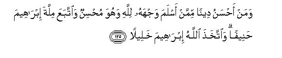 [125-126] Who can have a better way of life than the one who surrenders himself to Allah and does what is good and follows whole heartedly the way of Abraham whom Allah chose to be His friend? All that there is in the heavens and the earth belongs to Allah,150 and Allah encircles everything.151