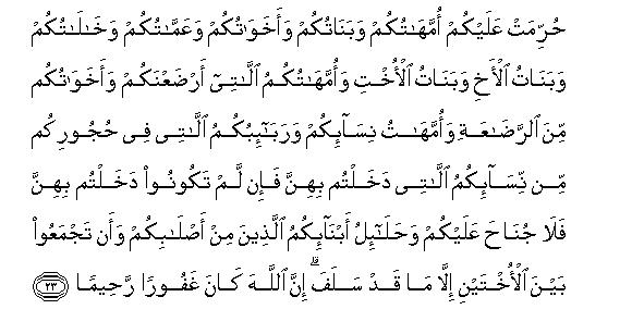 [22] And do not marry at all those women whom your father had married though what has happened in the past is excepted.32 This is an indecent and abominable thing and an evil practice.33