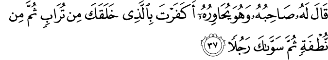 photoTransliteration: Qala lahu sahibuhu wahuwa yuhawiruhu akafarta biallathee khalaqaka min turabin thumma min nutfatin thumma sawwaka rajulan