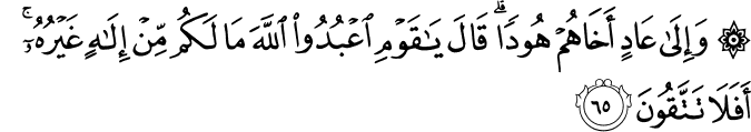 photoTransliteration: Waila AAadin akhahum hoodan qala ya qawmi oAAbudoo Allaha ma lakum min ilahin ghayruhu afala tattaqoona