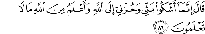 Translation: " He replied, "I complain to Allah alone of my sorrow and grief. And I know from Allah what you do not know.