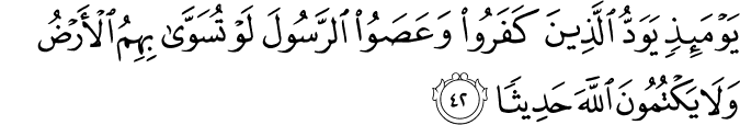 Translation: At that time, all those, who rejected the Messenger and disobeyed him, would wish the earth to split open and swallow them; for there they will not be able to hide anything from Allah.