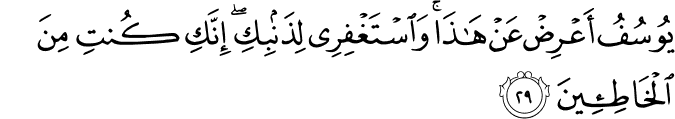 photoTransliteration: Yoosufu aAArid AAan hatha waistaghfiree lithanbiki innaki kunti mina alkhatieena