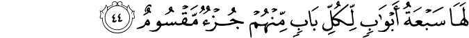 Translation: This Hell (with which the followers of Iblis have been threatened) has seven gates, and each gate has been specified for a separate group of them.