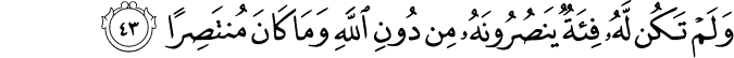 photoTransliteration: Walam takun lahu fiatun yansuroonahu min dooni Allahi wama kana muntasiran