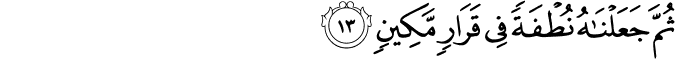 Transliteration: Thumma jaAAalnahu nutfatan fee qararin makeenin