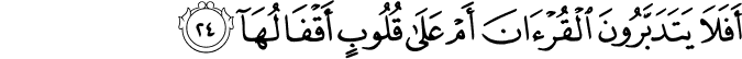 Translation: Have they not pondered over the Qur'an, or are there locks upon their hearts?