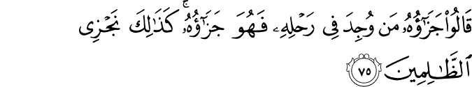 photoTransliteration: Qaloo jazaohu man wujida fee rahlihi fahuwa jazaohu kathalika najzee alththalimeena
