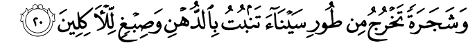 Translation: And We created the tree which grows on Mount Sinai, it gives oil and is used as food also by those who like to eat it.