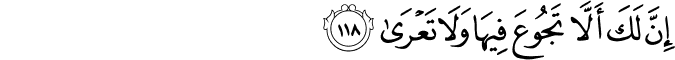 Transliteration: Inna laka alla tajooAAa feeha wala taAAra