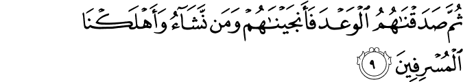 photoTransliteration: Thumma sadaqnahumu alwaAAda faanjaynahum waman nashao waahlakna almusrifeena
