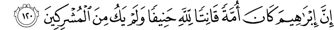 Translit: Inna ibraheema kana ommatan qanitan lillahi haneefan walam yaku mina almushrikeena