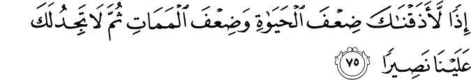 Translation:But if you had done so, We would have made you taste double chastisement in this world as well as in the Hereafter: then you would have found no helper against Us.