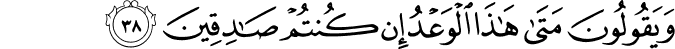 Translation:They ask, "Anyhow, when will this threat be made good, if you speak the truth?"