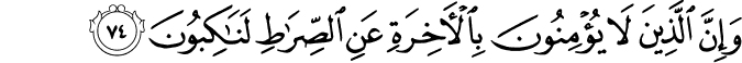 Translit: Wainna allatheena la yuminoona bialakhirati AAani alssirati lanakiboona
