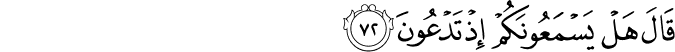 Translit: Qala hal yasmaAAoonakum ith tadAAoona
