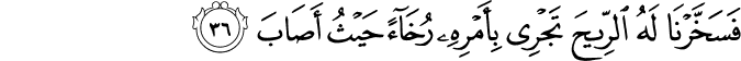 Translit: Fasakhkharna lahu alrreeha tajree biamrihi rukhaan haythu asaba