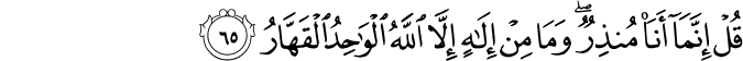 Translit: Qul innama ana munthirun wama min ilahin illa Allahu alwahidu alqahharu