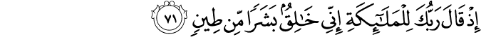 Translation:When your Lord said to the angels, "I am about to create man from clay.