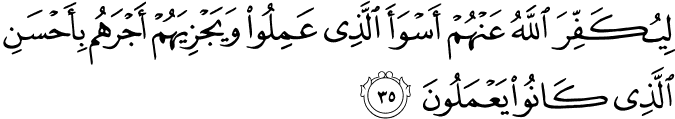Translit: Liyukaffira Allahu AAanhum aswaa allathee AAamiloo wayajziyahum ajrahum biahsani allathee kanoo yaAAmaloona