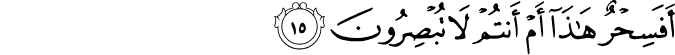 Translit: Afasihrun hatha am antum la tubsiroona