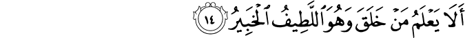 Translit: Ala yaAAlamu man khalaqa wahuwa allateefu alkhabeeru