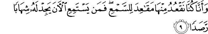 Translit: Waanna kunna naqAAudu minha maqaAAida lilssamAAi faman yastamiAAi alana yajid lahu shihaban rasadan