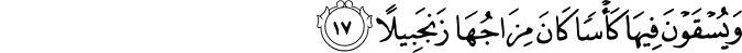 Translit: Wayusqawna feeha kasan kana mizajuha zanjabeelan