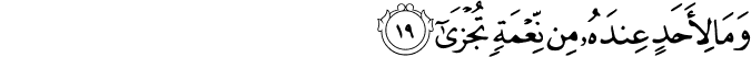 Translation:He has received no favor from anyone for which he may have to return a reward.