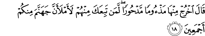 Translit: Qala okhruj minha mathooman madhooran laman tabiAAaka minhum laamlaanna jahannama minkum ajmaAAeena