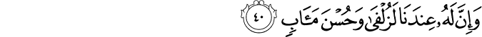 Translation:Surely, he has a place of nearness to Us and an excellent resort. |