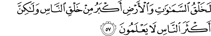 Translation:Surely the creation of the heavens and the earth is a greater thing than the creation of man, but most people do not know. |