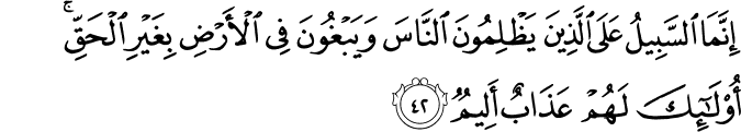 Translation:for blameworthy indeed are those who oppress others and commit excesses in the land without any right. For such people there is a painful torment. |