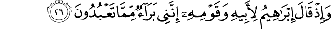 Translation:Recall the time when Abraham had said to his father and his people, "I have nothing to do with those whom you worship. |
