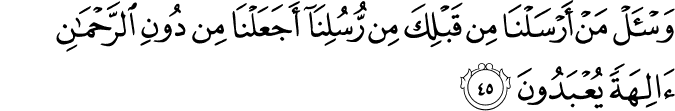 Translation:You may ask all other Messengers whom We sent before you if We ever had appointed any other gods to be worshiped besides the Merciful God. |