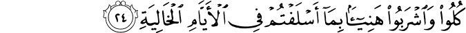 Translation:(To such people it will be said) "Eat and drink with relish as a reward for the deeds you did in the days gone by." |