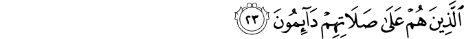 Translation:Who are steadfast and ever constant in regard to their salat. |