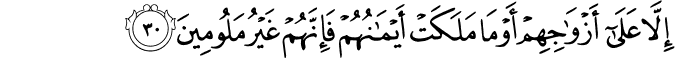 Translation:Except with regard to their wives and those women who are legally in their possession, for in their case they are not blameworthy, |